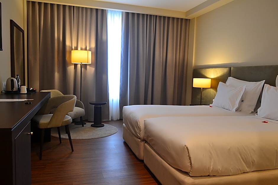 Providing free toiletries, this twin room includes a private bathroom with a bath or a shower and a hairdryer. The air-conditioned twin room provides a flat-screen TV with cable channels, soundproof walls, a mini-bar, a wardrobe as well as city views. The unit offers 2 beds.